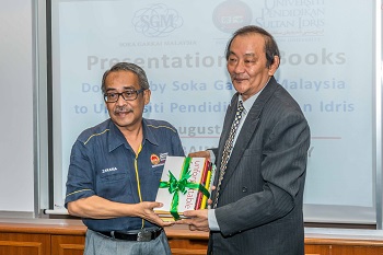 SGM延续自去年展开的赠书运动,于今年8月6日,赠送以池田SGI会长著作为主逾一百二十册书籍,予苏丹依德利斯师范大学(简称依大)端姑白侬图书馆。