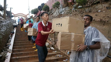 灾区临近的SGM分会与会员发挥人飢己飢、人溺己溺之人道精神,即时伸出温暖之手,率先展开赈济行动,进行协助清洗房子、发送物资等,他们当中也有自己是灾黎的,却义不容辞投人救助他人的行列。