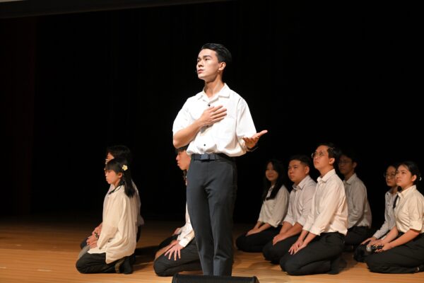 接着,逾百位学生部员以别开生面的歌舞剧演绎池田先生伟大人间革命的一生,从青年时代探求人生之道,邂逅人生之师,再到继承恩师遗志,一生为世界和平奔走不懈。最后一幕是“地涌青年的誓愿”,由各部长代表全体青年,誓言延续并扩大和平的浪潮,演出扣人心弦。