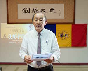 理事长许锡辉对当前世界局势给与明快解答——解决方案全在于大圣人佛法所蕴含的人本主义哲学。许理事长勉励青年作为“旗手”,努力弘扬伟大的日莲佛法。最后呼吁全员响应青年部长等人的决意,向着建立“青年学会”的踏实地迈进。