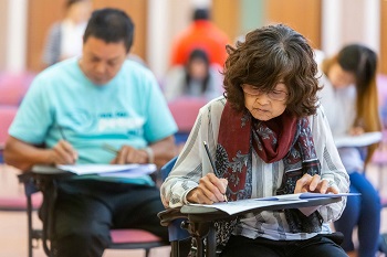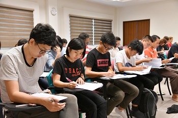 SGM理事长许锡辉、妇人部长陈爱梅、青年部长吕耀年莅临会场,勉励考生。在这之前,也有许多会员自愿抽出时间,与考生一同钻研教学,实践池田先生所说的“为后辈的成长竭尽心力”。