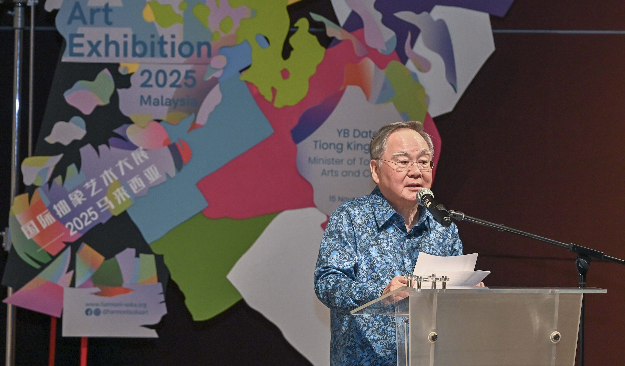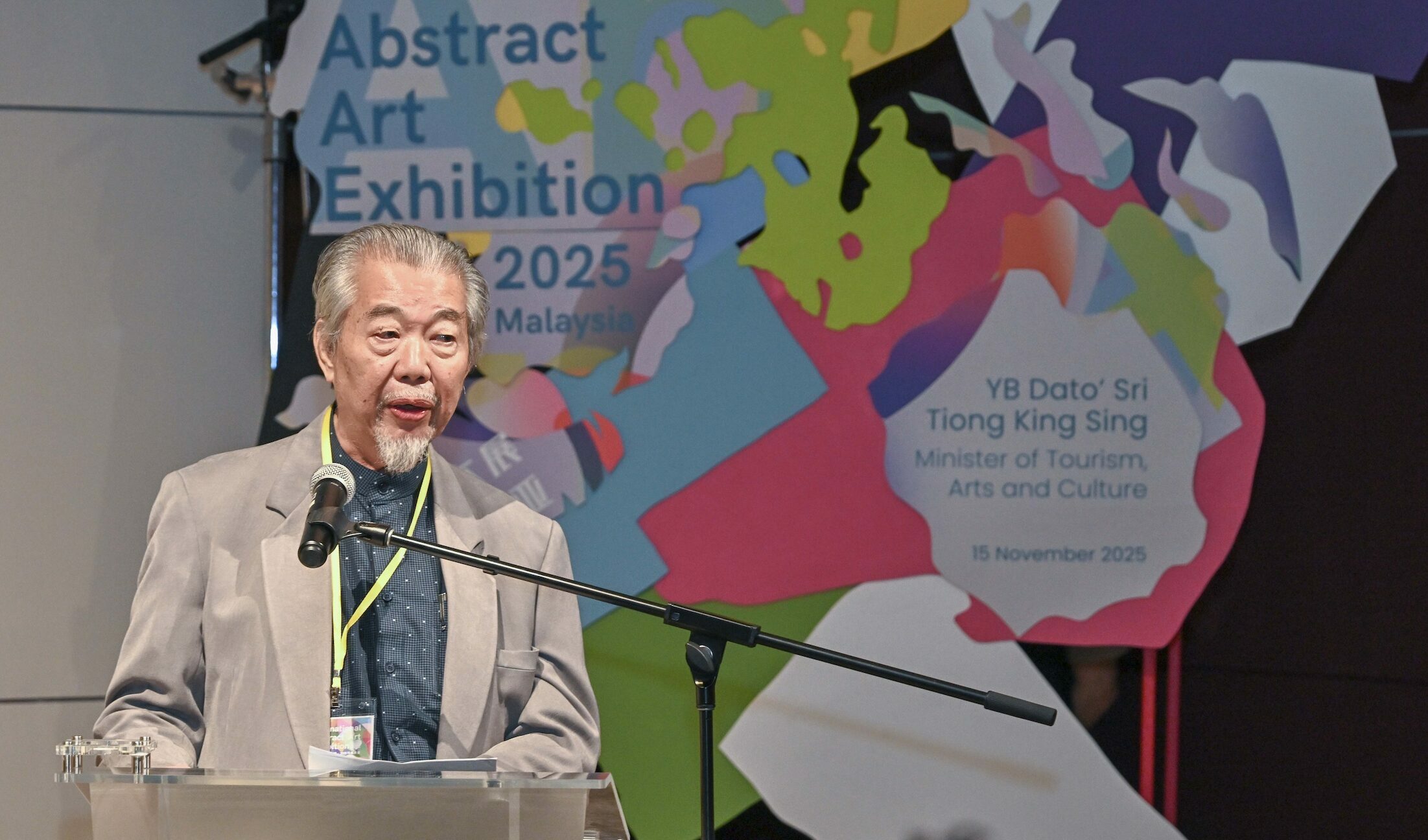 11月15日,国家艺术文化遗产大学(ASWARA)校长陈亚旺博士代表旅游、艺术及文化部长拿督斯里张庆信主持开幕典礼。陈博士指出,展览汇聚多国艺术家,体现“多元中的统一”精神,在世界存在分歧的当下更显珍贵。他鼓励公众前来感受作品的内涵。