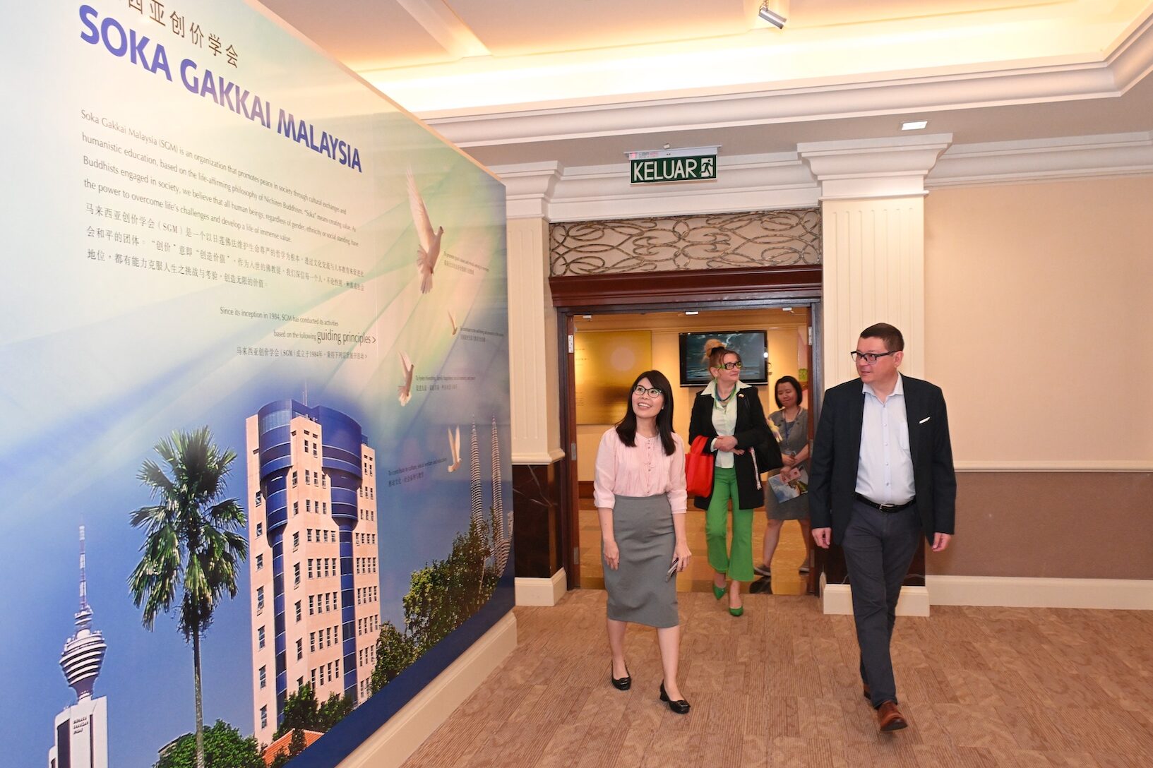 通过展览,他们更深入了解创价三代会长的事迹、池田先生促进世界和平的行动,以及SGM在和平、文化与教育展开的运动。多米尼克临时代办参观后表示:“我仿佛成为了一个更好的人。池田先生所获得的众多学位,体现了世界对其贡献的高度认可,值得钦佩。”