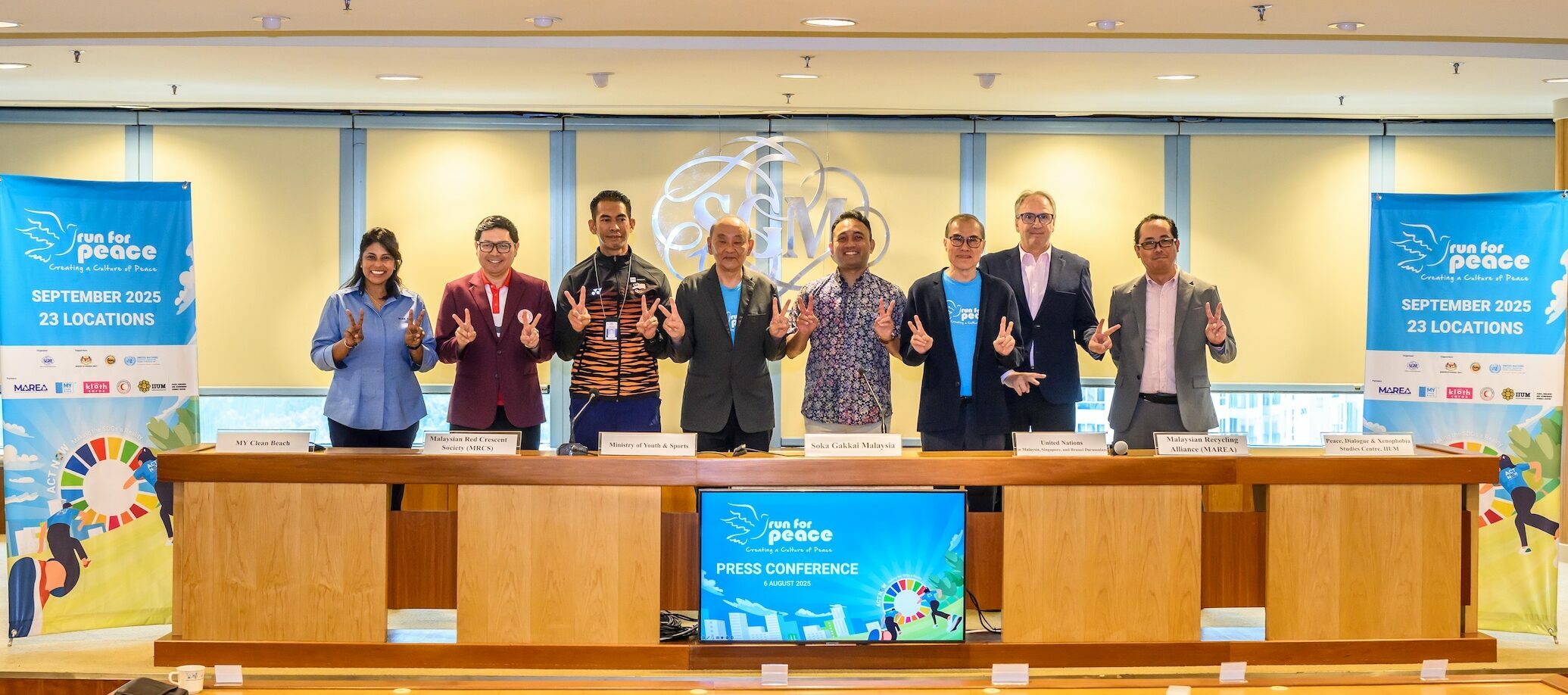 SGM于2025年8月6日在SGM综合文化中心召开新闻发布会,发布即将于9 月在全国超过二十个地点举行的“和平之跑”,预计吸引超过七万人共同为和平与可持续发展奔走。