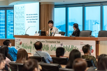 4月为SGM可持续发展月,为此SGM特于2018年4月21日在SGM综合文化中心举行一场题为“与都市野生动物和睦共存”的讲座,邀请生态学研究者班杰明主讲,由SGM理事会理事陈龙律师主持。共114人出席聆听,其中大部分为青年。