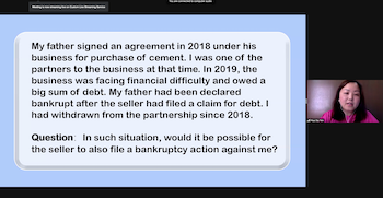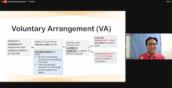 两位主讲人以《2020年减低冠病疫情冲击临时措施法令》与《1967年破产法令》为主轴,除了解说这两项法令如何保障受冠病疫情影响的社众生活以外,也详细讲解有关破产的知识。