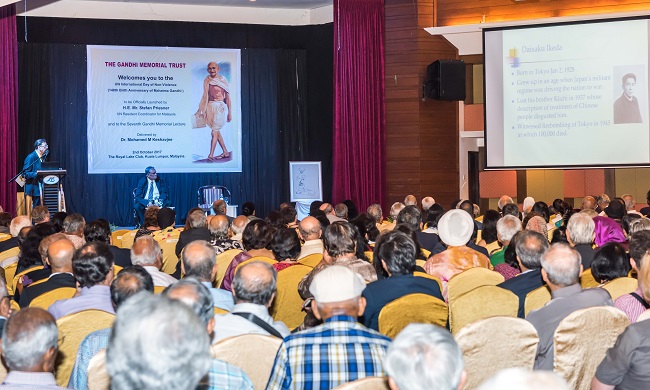 在马来西亚,其中一项纪念活动是“甘地纪念演讲”,由甘地纪念馆信托(GMT)于2017年10月2日在吉隆坡皇家湖滨俱乐部举行。这第七届的纪念演讲,由穆罕默德·凯沙夫吉博士主讲,题为“甘地、曼德拉、金与池田——21世纪的转型先驱”。