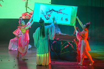 接着呈献琴棋书画四艺的雅韵风华、中国著名戏曲《梨花颂》《帝女花》《穆桂英》《红楼梦》等,展现百花齐发,丰富底蕴的中华文化。
