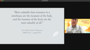 御书学习由黄德坤副理事长主持,讲解佛法与医学的共同目标、超越极限的重要、保持希望并以“大心”获胜,以及了解健康、疾病与死亡的本质等课题。他强调察觉魔性作用,于工作散播希望的重要。