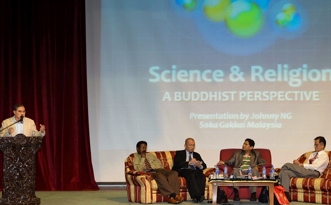 马来西亚创价学会(SGM)与马来西亚伊斯兰国际大学(简称“伊大”)可兰经青年俱乐部、希达亚中心及雪兰莪伊斯兰教理事会于2012年11月26日在伊大礼堂联合主办跨宗教信仰对话会,主题为“科学与宗教概念”。联办单位期盼透过对话会探讨宗教与科学之间的联带,以及其解决社会问题的功能,尤其在促进世界和平与和谐所扮演的角色。同时希望借此加深彼此的认知、信赖与友谊,消弭存有的无知与偏见。