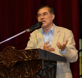 SGM副会长黄德坤在会上以日莲佛法阐述科学与宗教的异同。黄副会长向听众讲解“色心不二”“依正不二”“缘起”等法理,并强调全人类实际上都是“同根生”。黄氏也强调,现代人重视科技发展多于精神熏陶,他吁请与会者共同携手将“寄生”社会转换为“共生”社会,以改变现今的不良趋势。