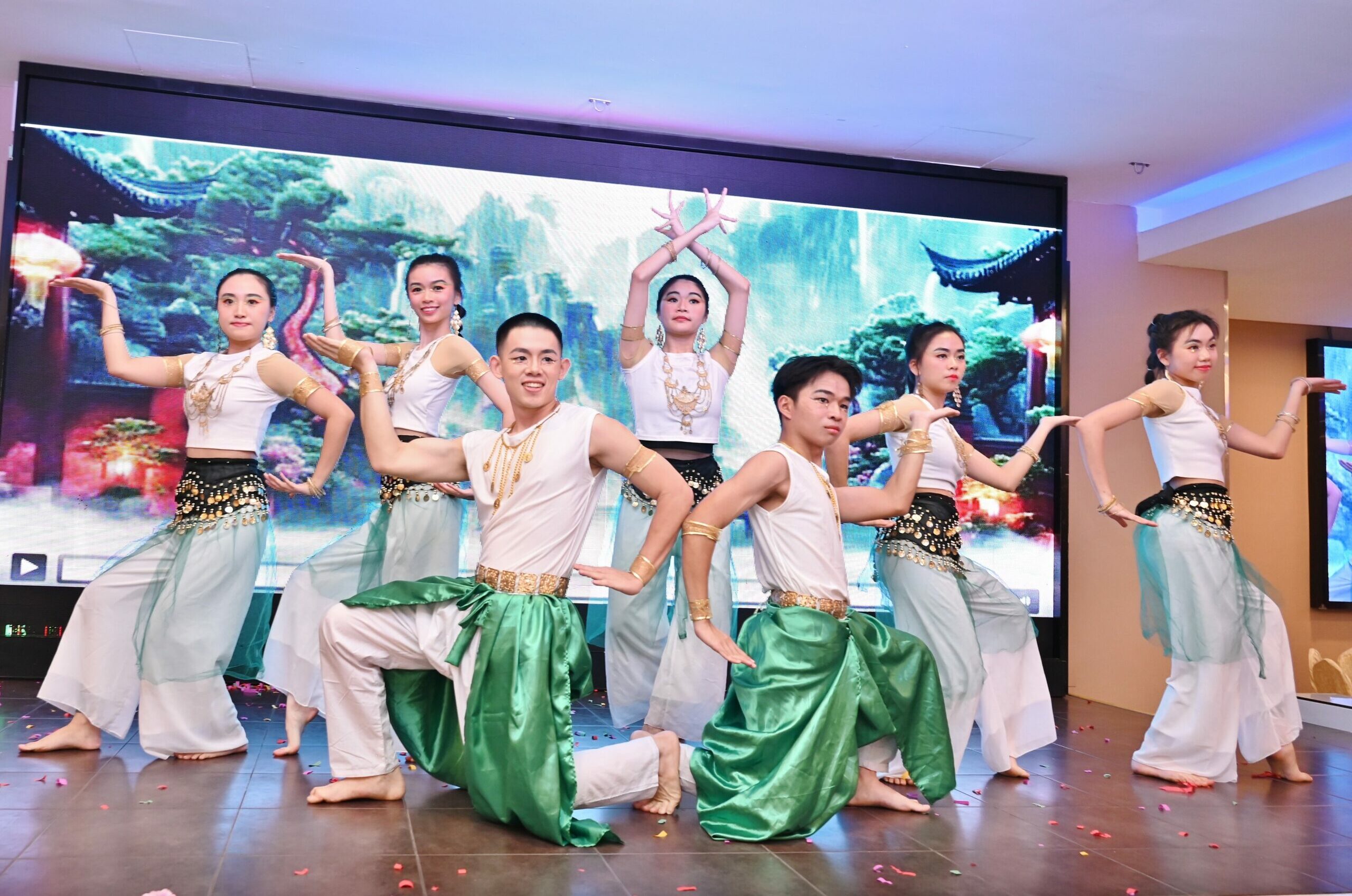 12位文化组员以轻快的华族舞蹈《盛世国乐》拉开晚宴序幕,随后带来热力四射的蛇舞,将现场气氛推向高潮,赢得热烈的掌声,节庆氛围热络。
