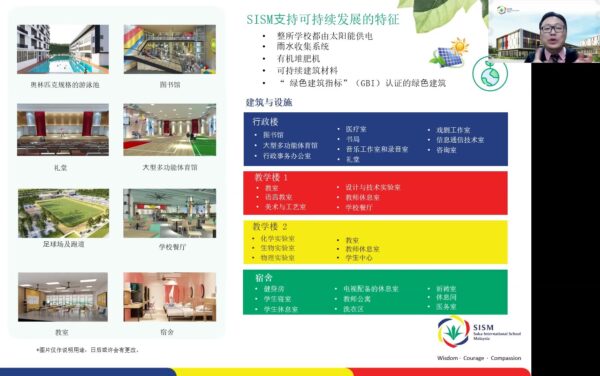 教务主任讲解SISM课程与学术途径、提供的科目、学生一天的生活,以及学校与寄宿设施,强调2023年开设的七或八年级,可供11至14岁学生提出申请,未来几年将陆续开放更高年级的申请,最后扼要重述学校的卓越之处以及学生的幸福为教育的最大目的。
