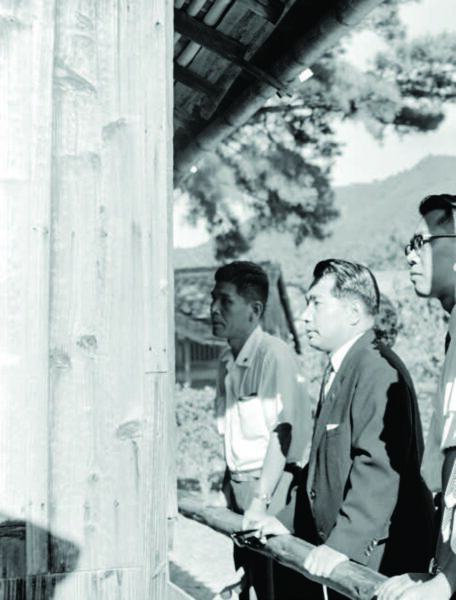 1956年9月5日,户田先生与池田先生看着日本地图,展望广布发展。当时的会员户数,东京已达十万,关西亦超过六万,而山口县仅有430户。