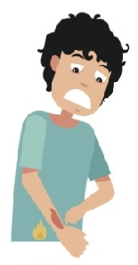若烫、烧伤部位有衣物、 戒指、手表或腰带等,应马上取下,以免残留在物件的热能导热,或烫、烧伤部位因肿胀而难以除下。